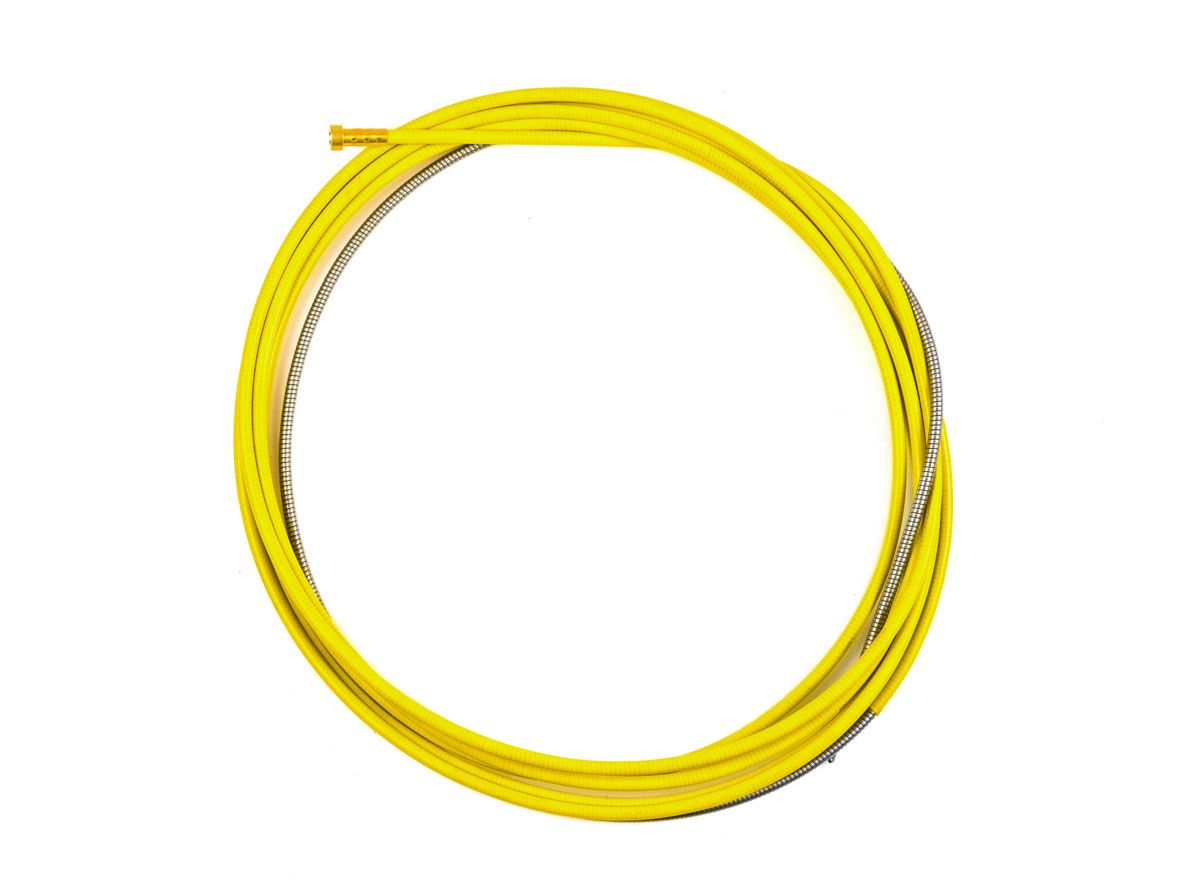 Канал направляющий (1,2–1,6) 4,4 м желтый необходим в сварке типов MIGMAG для подачи сварочной проволоки к соплу сварного пистолета. Подача происходит непосредственно от инвертора или от выносного элемента, подающего проволоку. Фиксация концов канала осуществляется в горелке и в инверторе.