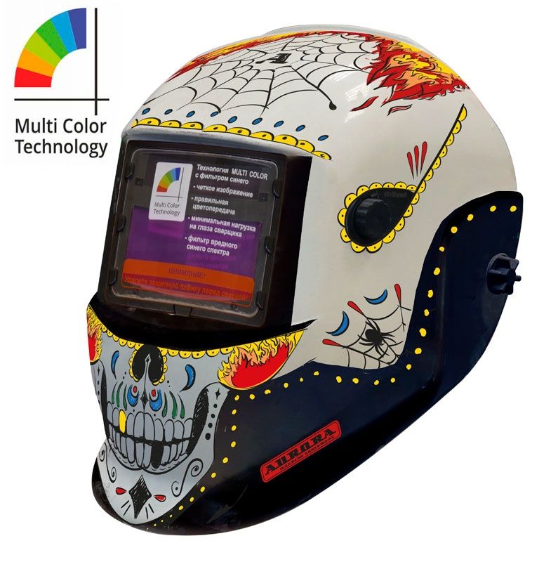 MULTI COLOR – технология естественной цветопередачи с фильтром синего. Щитки AURORA позволяют сварщику видеть процесс сплавления и кристаллизации шва во всех нюансах. Нанесение на промежуточные стёкла автоматического фильтра специального покрытия из металла и полимеров, позволяет видеть зону сварки как через хорошие солнцезащитные очки, гарантируя при этом высокий уровень защиты глаз. В отличие от многих конкурентов сварочные маски AURORA MULTI COLOR гарантируют надёжную защиту глаз сварщика не только от вредного воздействия ультрафиолета и инфракрасного излучения, но и от коротковолнового участка синего спектра, пропуская к глазам только безопасный синий с длинной волны 450-480nm.