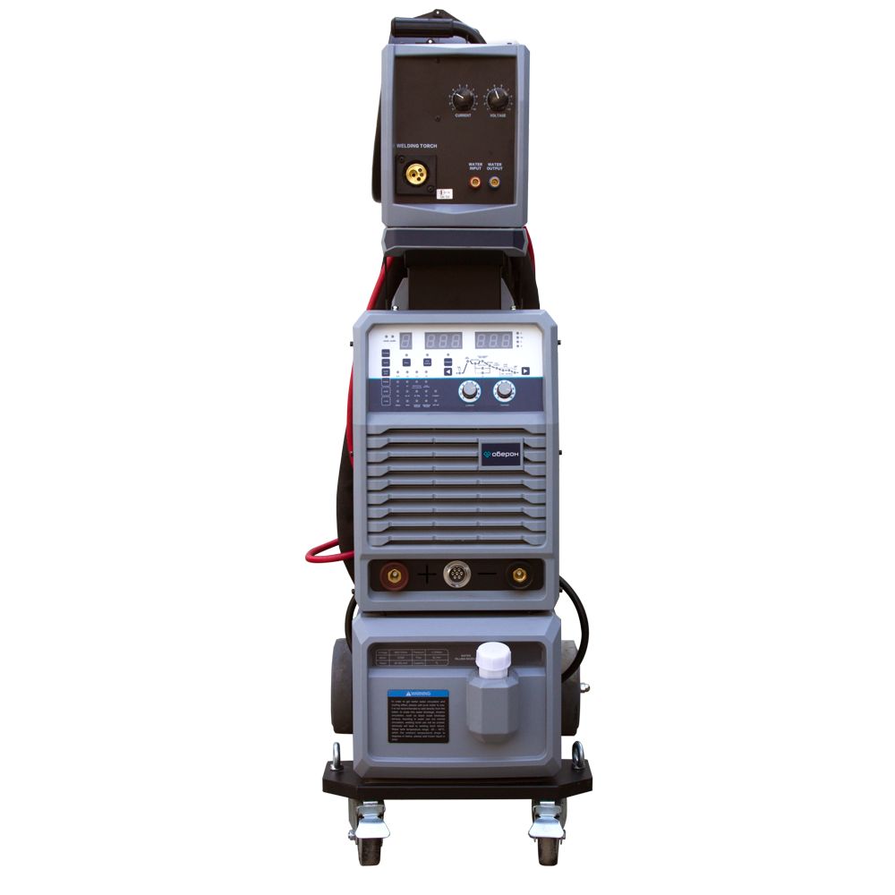 Сварочный инверторный аппарат Оберон MIG 500 Pulse представляет собой высокопроизводительное многофункциональное оборудование, способное обеспечить сварку в нескольких режимах: стандартном MIG/MAG, импульсном режиме, режиме двойного импульса, ручной сварки MMA. Особенности: Режим двойного импульса позволяет с легкостью и особым качеством сваривать нержавеющую сталь, алюминиевые сплавы и изделия из тонколистового металла. Функция синергетического управления позволяет выбирать оптимальные параметры сварочного тока, при этом корректировка сварочного напряжения (длины дуги) происходит автоматически. Возможность сохранения настроенных режимов сварки под определенные задачи в ячейки памяти дают возможность просто и быстро переключаться между режимами при замене материалов. Полная циклогамма позволяет производить точную настройку сварочного процесса, что обеспечивает максимальное качество сварки и сводит к минимуму потребность в последующей обработке. Подающий механизм выносного типа позволяет увеличить производительность и сократить время работы сварщика. 2Т/4Т режимы работы сварочной горелки для сварки коротких или длинных швов. Подходит для сварки углеродистой стали, алюминия, кремния, магния, нержавеющей стали, меди и других материалов проволокой диаметром от 0,8 до 1,6 мм. Стандартная комплектация: Сварочный аппарат - 1; Выносной подающий механизм - 1; Инструкция по эксплуатации - 1; Сварочная горелка MW-501 3м - 1; Кабель управления 5м - 1; Блок водяного охлаждения - 1; Тележка - 1.